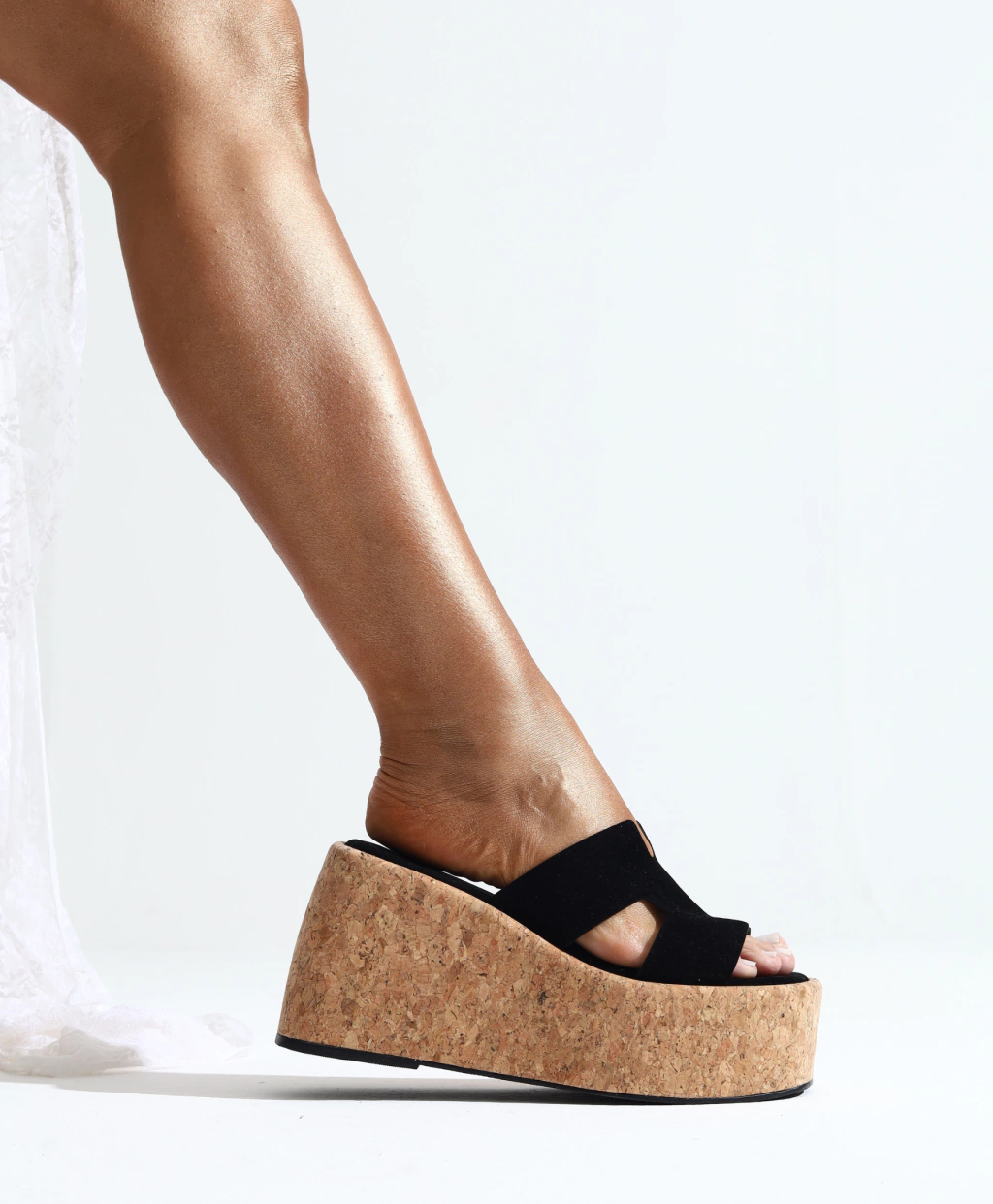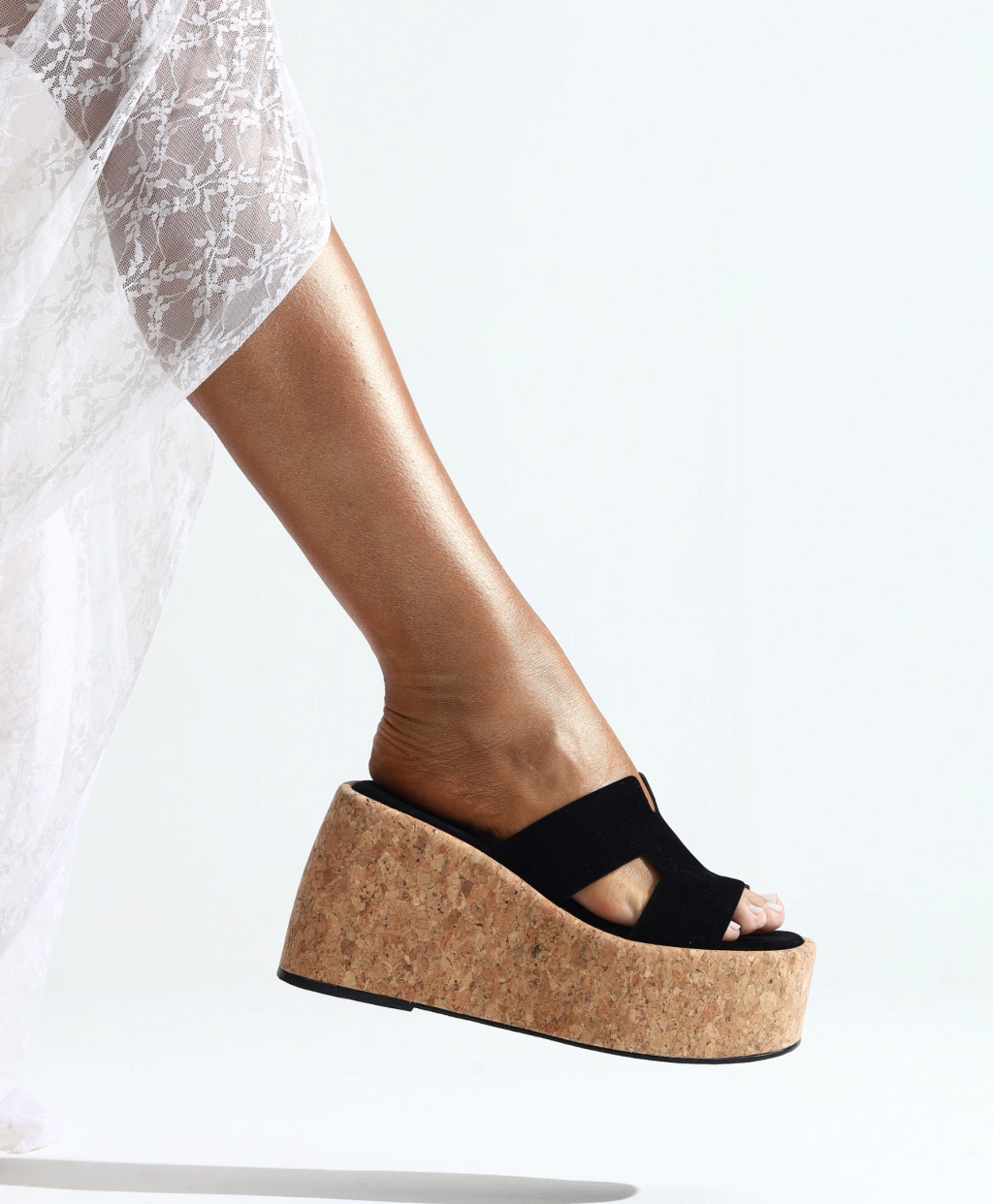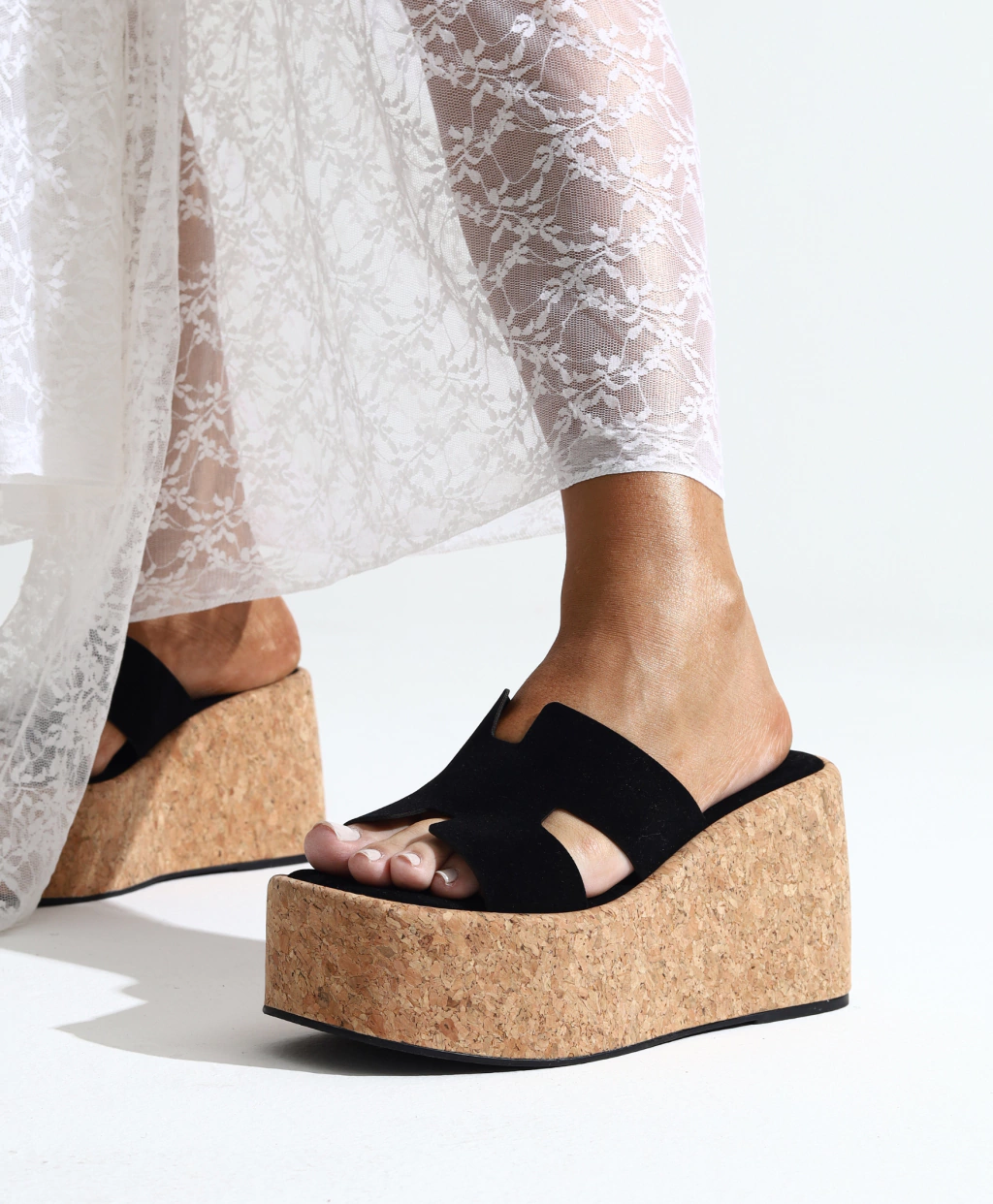 O tamanco H ganhou também uma versão mais robusta com salto de 10 cm e revestimento em cortiça, proporcionando um visual natural e sofisticado, além de oferecer leveza e conforto ao caminhar. A base é curva e emborrachada, com bico redondo. A tira superior tem design em formato de H, garantindo um ajuste seguro e um visual contemporâneo.